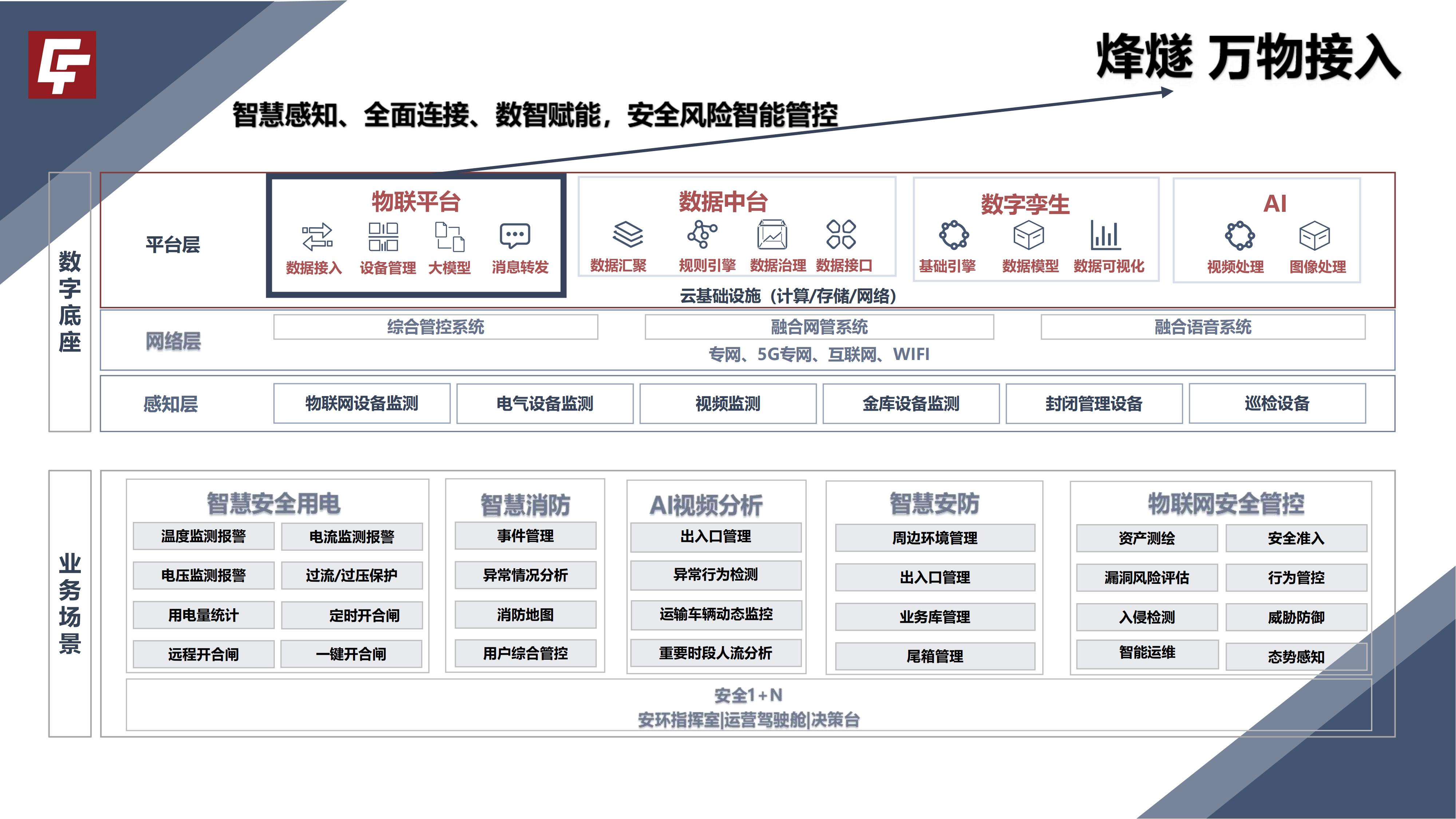 通(tong)過數據采集(ji)、數據處理(li)、數據分析、數據集(ji)成提供智(zhi)(zhi)慧(hui)(hui)用(yong)電(dian)、智(zhi)(zhi)慧(hui)(hui)消(xiao)防(fang)、智(zhi)(zhi)慧(hui)(hui)安防(fang)、AI智(zhi)(zhi)慧(hui)(hui)監(jian)控、異地(di)值(zhi)守業(ye)務(wu)庫、網(wang)絡安全威脅(xie)檢測防(fang)護(hu)等通(tong)用(yong)場景(jing)功能。通(tong)過業(ye)務(wu)編排,可提供智(zhi)(zhi)慧(hui)(hui)樓宇,智(zhi)(zhi)慧(hui)(hui)園區,平安校園、智(zhi)(zhi)慧(hui)(hui)工(gong)地(di)、智(zhi)(zhi)慧(hui)(hui)交通(tong)、智(zhi)(zhi)慧(hui)(hui)醫(yi)療等定(ding)制(zhi)化(hua)應用(yong)場景(jing)并(bing)對物聯網(wang)存(cun)在的(de)問題或潛在威脅(xie)進行(xing)診(zhen)斷并(bing)做出告(gao)警。