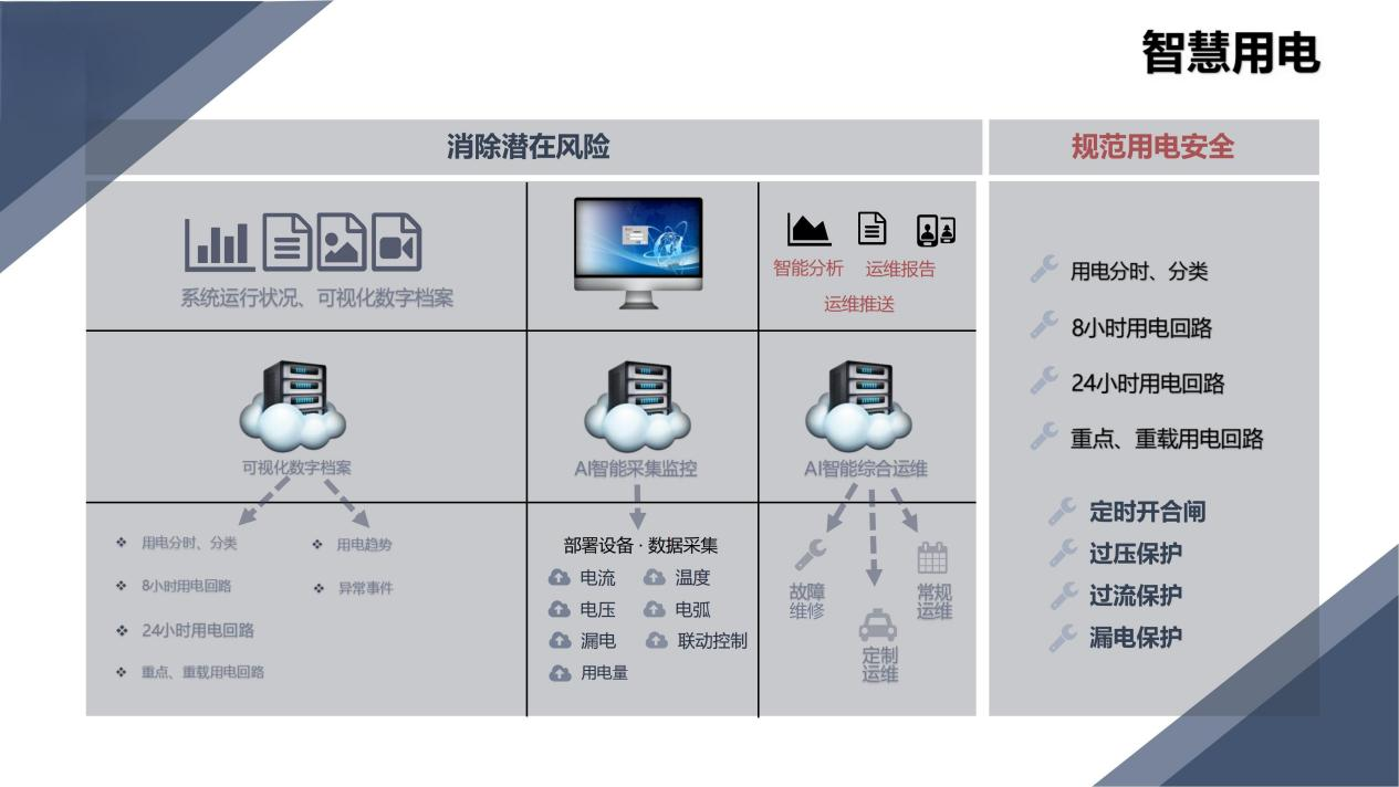 通(tong)過軟(ruan)硬件結合(he),解決各種用(yong)電(dian)問(wen)題(ti)(ti),例(li)如觸(chu)電(dian)、電(dian)氣(qi)火(huo)災、電(dian)力管理、運(yun)維等問(wen)題(ti)(ti)。將“隱形”的電(dian)變為直觀數(shu)據,實現用(yong)電(dian)數(shu)字化,保障用(yong)電(dian)場景的安全,同時(shi)降低運(yun)維成本(ben)、管理成本(ben)以及降低設備損耗。