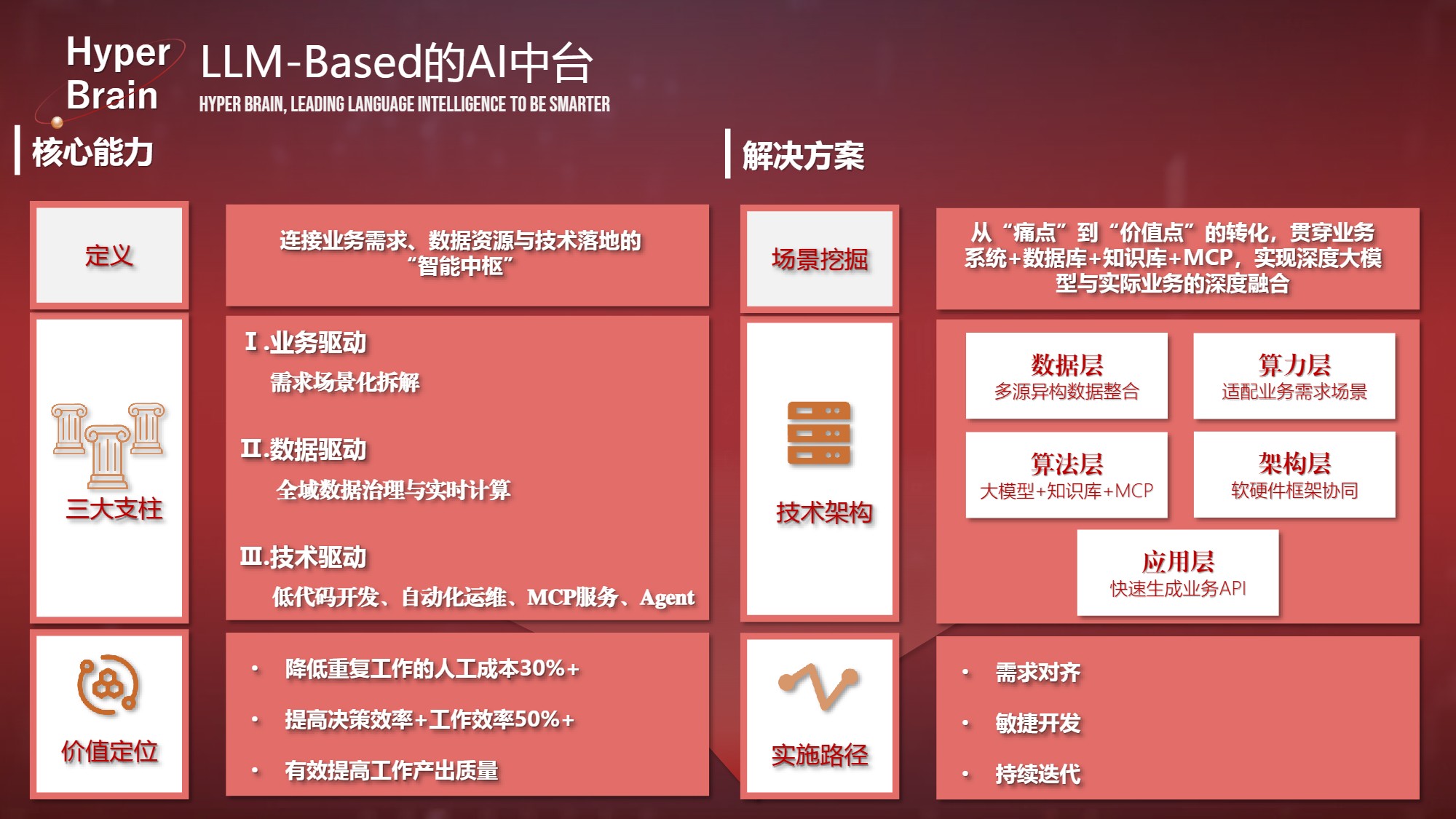 技術驅動:集成低代碼開發、自動化運維、MCP及Agent體系,降低人工成本30%+,提升決策效率50%+。