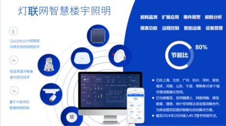 智慧照明-通過物聯燈網絡實現“人來燈亮,燈隨人動”的無感節能,平均節能率超過80%;